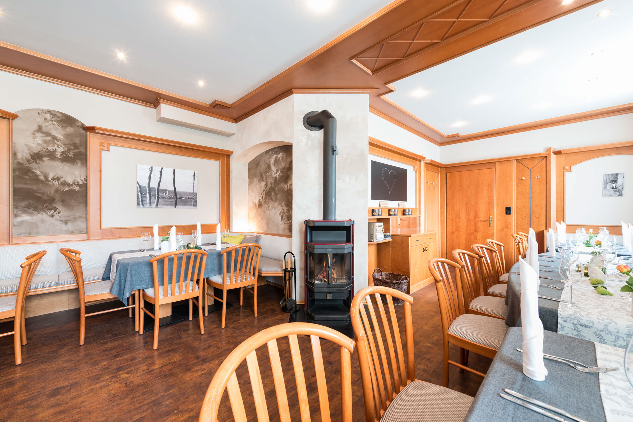 Warme Farben, zeitlos elegante Einrichtung und ein knisternder Holzofen. Dieser Raum schafft ein ganz besonders angenehm ruhiges Ambiente, um hier mit der Familie, lieben Freunden oder Firmenkunden unbeschwerte Stunden bei feinem Essen und guten Gesprächen zu verbringen. Nennen Sie uns bei der Buchung einfach Ihre individuellen Wünsche. Zum Beispiel decken wir hier gerne eine lange Festtafel ein, an der Ihre ganze Gesellschaft Platz nehmen kann. Platz für ca. 40 Personen