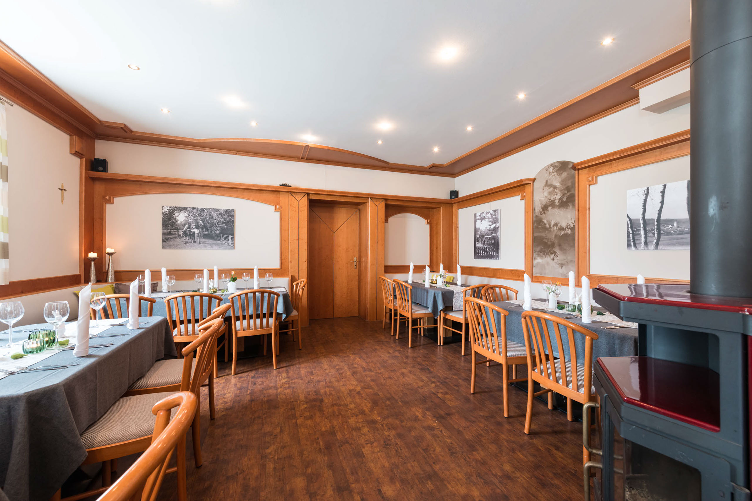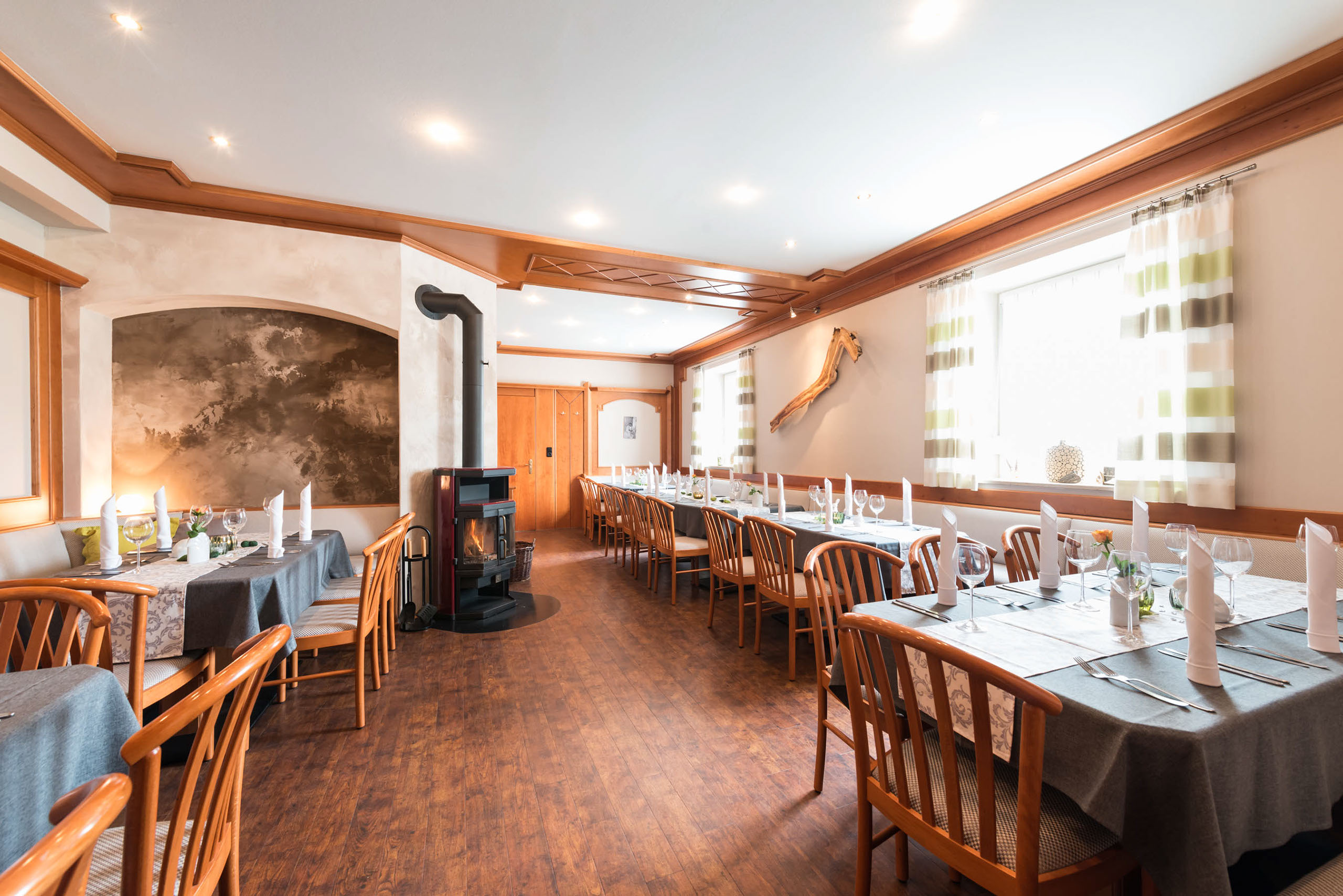 Warme Farben, zeitlos elegante Einrichtung und ein knisternder Holzofen. Dieser Raum schafft ein ganz besonders angenehm ruhiges Ambiente, um hier mit der Familie, lieben Freunden oder Firmenkunden unbeschwerte Stunden bei feinem Essen und guten Gesprächen zu verbringen. Nennen Sie uns bei der Buchung einfach Ihre individuellen Wünsche. Zum Beispiel decken wir hier gerne eine lange Festtafel ein, an der Ihre ganze Gesellschaft Platz nehmen kann. Platz für ca. 40 Personen